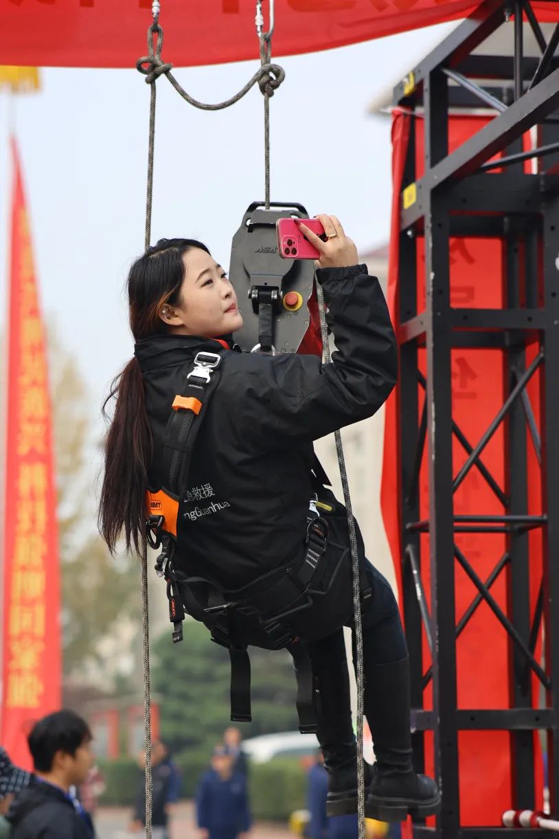 消防灭火作战体验上,讲解员详细介绍了多种灭火器的特点以及适用范围,演示了灭火器与水枪灭火的操作要领,并组织人员轮流开展了灭火处置作业。