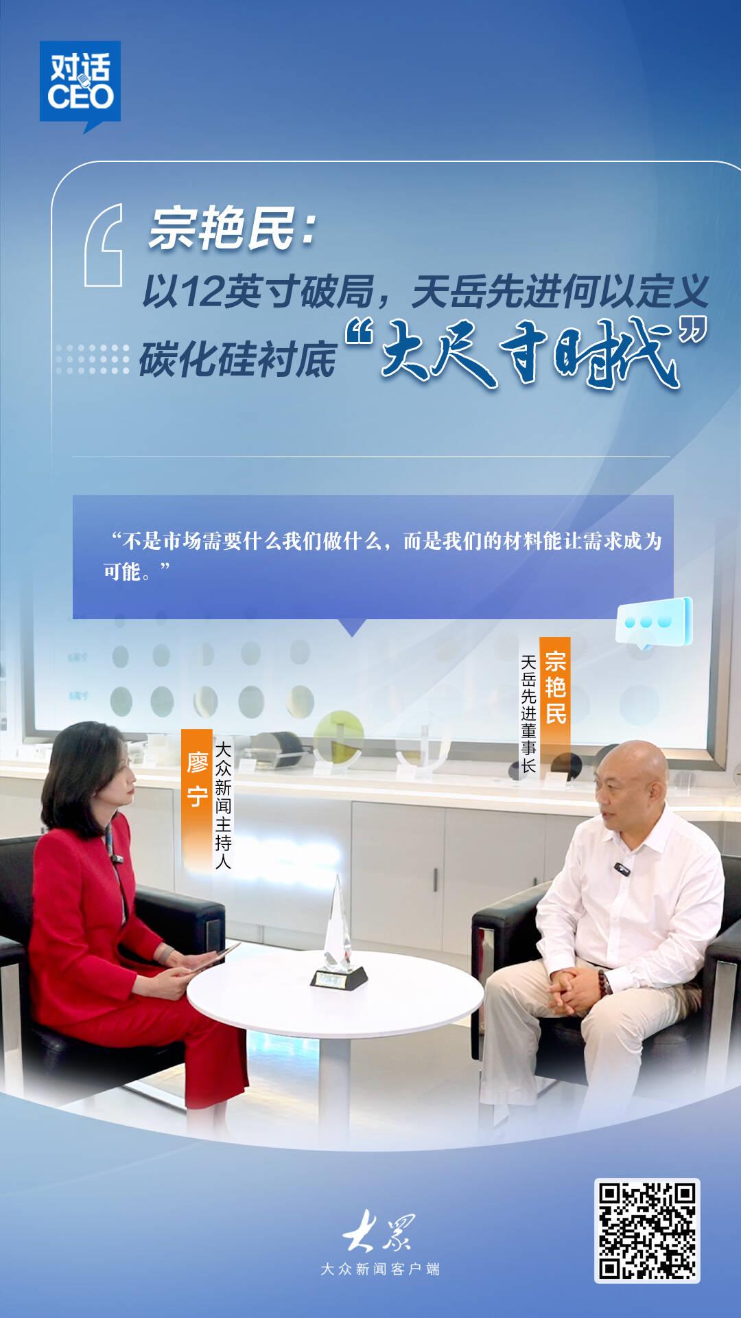 一家创立仅15年的企业,如何在“碳化硅”这一尖端领域实现从无到有、从追赶到引领?大众新闻记者独家对话山东天岳先进科技股份有限公司董事长宗艳民,探寻其背后的技术底气与突破路径。